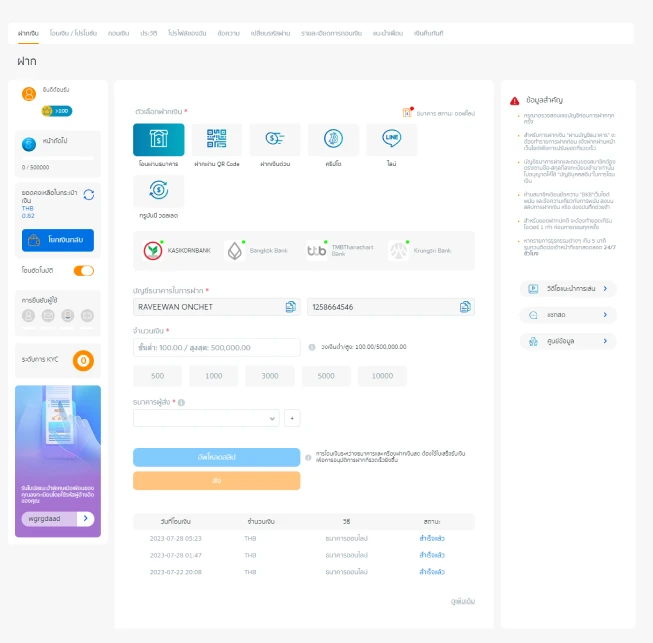 1. ไปที่หน้า “ฝากเงิน” ของเว็บไซต์